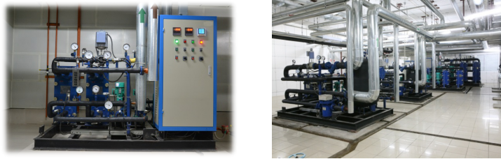 API热交换机组是集成了板式热交换器、水泵、阀门、仪表及控制系统于一体的成套热交换设备;根据用户需要配置传感器、控制器、电动执行机构、远程通讯等控制系统,加装热量流量计量系统,水处理系统,软化水箱等附属设备,以实现不同的控制功能,是一种经济、安全、可靠的热交换设备。