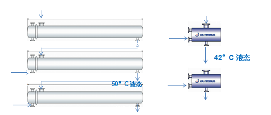 改造前要用2台管壳式换热器实现72℃至50℃的冷凝和过冷。 单台PSHE就能实现72℃至42℃的冷凝和过冷。